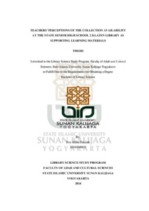 Eva Alfina Fauziah, NIM.: 20101040031 (2024) TEACHERS' PERCEPTIONS OF THE COLLECTION AVAILABILITY AT THE STATE SENIOR HIGH SCHOOL 2 KLATEN LIBRARY AS SUPPORTING LEARNING MATERIALS. Skripsi thesis, UIN SUNAN KALIJAGA YOGYAKARTA.