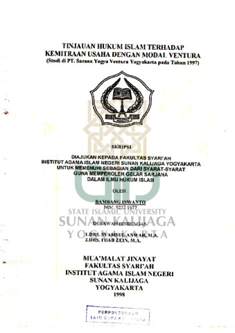 Text (TINJAUAN HUKUM ISLAM TERHADAP KEMITRAAN USAHA DENGAN MODAL VENTURA (Studi di PT. Sarana Yogya Ventura Yogyakarta pada Tahun 1997))