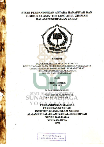 Noor Kholis, NIM.: 92341805 (2000) STUDI PERBANDINGAN ANTARA HANAFIYAH DAN JUMHUR ULAMA TENTANG AHLU ZIMMAH DALAM PENERIMAAN ZAKAT. Skripsi thesis, UIN SUNAN KALIJAGA YOGYAKARTA.