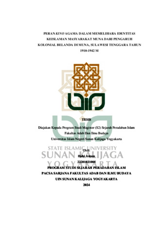 Text (PERAN KINO AGAMA DALAM MEMELIHARA IDENTITAS KEISLAMAN MASYARAKAT MUNA DARI PENGARUH KOLONIAL BELANDA DI MUNA, SULAWESI TENGGARA TAHUN 1910-1942 M)