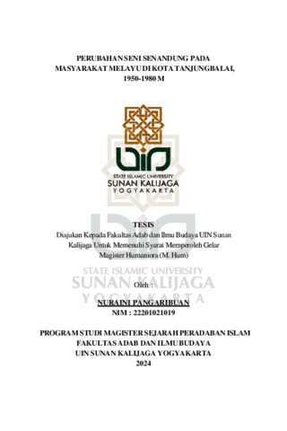 Nuraini Pangaribuan, NIM.: 22201021019 (2024) PERUBAHAN SENI SENANDUNG PADA MASYARAKAT MELAYU DI KOTA TANJUNGBALAI, 1950-1980 M. Masters thesis, UIN SUNAN KALIJAGA YOGYAKARTA.