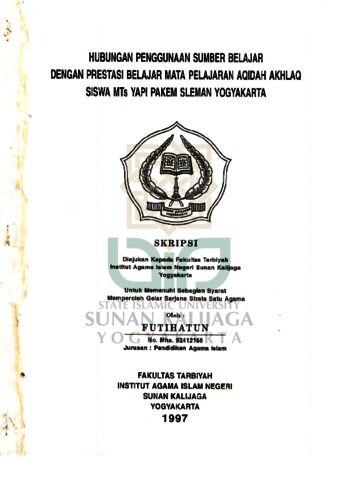 Text (HUBUNGAN PENGGUNAAN SUMBER BELAJAR DENGAN PRESTASI BELAJAR MATA PELAJARAN AQIDAH AKHLAQ SISWA MTS YAPI PAKEM SLEMAN YOGYAKARTA)
