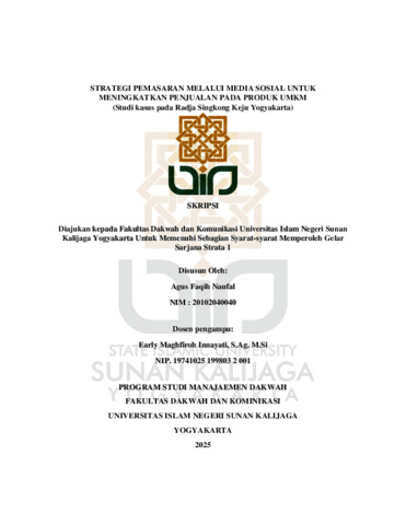 Agus Faqih Naufal, NIM.: 20102040040 (2025) STRATEGI PEMASARAN MELALUI MEDIA SOSIAL UNTUK MENINGKATKAN PENJUALAN PADA PRODUK UMKM (STUDI KASUS PADA RADJA SINGKONG KEJU YOGYAKARTA). Skripsi thesis, UIN SUNAN KALIJAGA YOGYAKARTA.