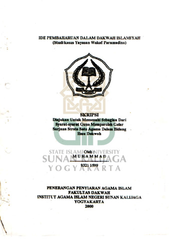 Muhammad, NIM.: 93211599 (2000) IDE PEMBAHARUAN DALAM DAKWAH ISLAMIYAH (STUDI KASUS YAYASAN WAKAF PARAMADINA). Skripsi thesis, UIN SUNAN KALIJAGA YOGYAKARTA.