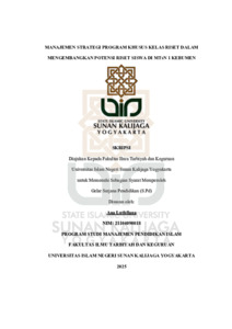 Ana Luthfiana, NIM.: 21104090018 (2025) MANAJEMEN STRATEGI PROGRAM KHUSUS KELAS RISET DALAM MENGEMBANGKAN POTENSI RISET SISWA DI MTsN 1 KEBUMEN. Skripsi thesis, UIN SUNAN KALIJAGA YOGYAKARTA.