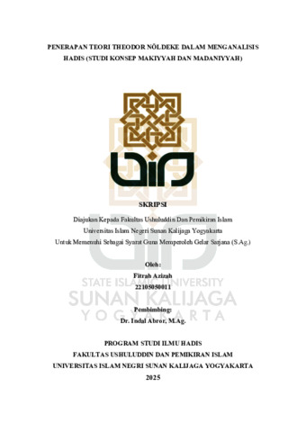 Fitrah Azizah, NIM.: 22105050011 (2025) PENERAPAN TEORI THEODOR NOLDEKE DALAM MENGANALISIS HADIS (STUDI KONSEP MAKIYYAH DAN MADANIYYAH). Skripsi thesis, UIN SUNAN KALIJAGA YOGYAKARTA.