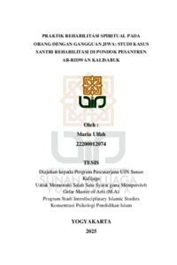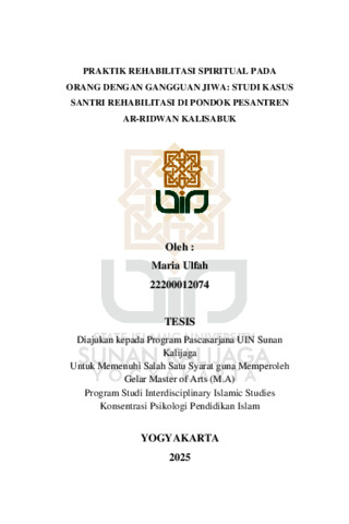 Maria Ulfah, NIM.: 22200012074 (2025) PRAKTIK REHABILITASI SPIRITUAL PADA ORANG DENGAN GANGGUAN JIWA: STUDI KASUS SANTRI REHABILITASI DI PONDOK PESANTREN AR-RIDWAN KALISABUK. Masters thesis, UIN SUNAN KALIJAGA YOGYAKARTA.