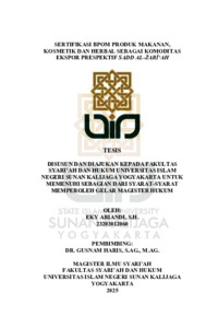 Eky Ariandi, S.H., NIM.: 23203012060 (2025) SERTIFIKASI BPOM PRODUK MAKANAN, KOSMETIK DAN HERBAL SEBAGAI KOMODITAS EKSPOR PRESPEKTIF SADD AL-ZARIAH. Masters thesis, UIN SUNAN KALIJAGA YOGYAKARTA.