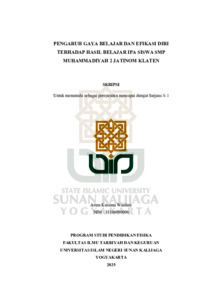 Arum Kusuma Wardani, NIM.: 18106090006 (2025) PENGARUH GAYA BELAJAR DAN EFIKASI DIRI TERHADAP HASIL BELAJAR IPA SISWA SMP MUHAMMADIYAH 2 JATINOM KLATEN. Skripsi thesis, UIN SUNAN KALIJAGA YOGYAKARTA.