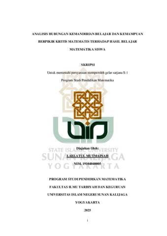 Text (ANALISIS HUBUNGAN KEMANDIRIAN BELAJAR DAN KEMAMPUAN BERPIKIR KRITIS MATEMATIS TERHADAP HASIL BELAJAR MATEMATIKA SISWA)
