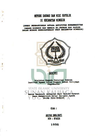 Text (METODE DAKWAH DAN MISI KATOLIK DI KECAMATAN MINGGIR (STUDI PERBANDINGAN ANTARA AKTIFITAS MUHAMMADIYAH CABANG MINGGIR DAN GEREJA St.PETRUS DAN PAULUS DALAM BIDANG KESEJAHTERAAN UMAT KECAMATAN MINGGIR))