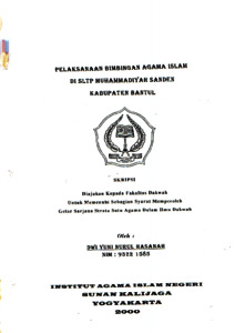 Dwi Yuni Nurul Hasanah, NIM.: 93221585 (2000) PELAKSANAAN BIMBINGAN AGAMA ISLAM DI SLTP MUHAMMADIYAH SANDEN KABUPATEN BANTUL. Skripsi thesis, UIN SUNAN KALIJAGA YOGYAKARTA.