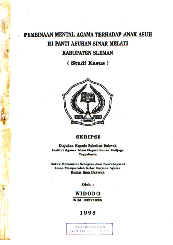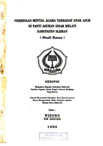 Widodo, NIM.: 93221635 (1998) PEMBINAAN MENTAL AGAMA TERHADAP ANAK ASUH DI PANTI ASUHAN SINAR MELATI KABUPATEN SLEMAN (STUDI KASUS). Skripsi thesis, UIN SUNAN KALIJAGA YOGYAKARTA.