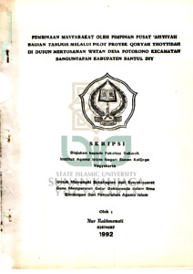 Nur Rakhmawati, NIM.: 02874697 (1992) PEMBINAAN MASYARAKAT OLEH PIMPINAN PUSAT 'AISYIYAH BAGIAN TABLIGH MELALUI PILOT PROYEK QORYAH THOYYIBAH DI DUSUN MERTOSANAN WETAN DESA POTORONO KECAMATAN BANGUNTAPAN KABUPATEN BANTUL DIY. Skripsi thesis, UIN SUNAN KALIJAGA YOGYAKARTA.