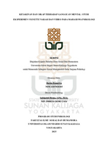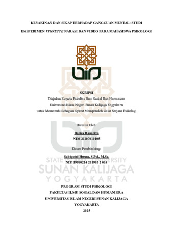Bariza Banariva, NIM.: 21107010105 (2025) KEYAKINAN DAN SIKAP TERHADAP GANGGUAN MENTAL: STUDI EKSPERIMEN VIGNETTE NARASI DAN VIDEO PADA MAHASISWA PSIKOLOGI. Skripsi thesis, UIN SUNAN KALIJAGA YOGYAKARTA.