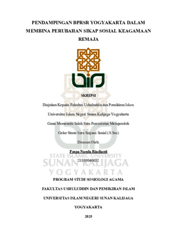 Text (PENDAMPINGAN BPRSR YOGYAKARTA DALAM MEMBINA PERUBAHAN SIKAP SOSIAL KEAGAMAAN REMAJA)