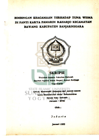 Indarto, NIM.: 02874809 (1993) BIMBINGAN KEAGAMAAN TERHADAP TUNA WISMA DI PANTI KARYA PAMARDI RAHARJO KECAMATAN BAWANG KABUPATEN BANJARNEGARA. Skripsi thesis, UIN SUNAN KALIJAGA YOGYAKARTA.