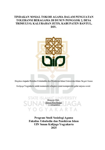 Text (TINDAKAN SOSIAL TOKOH AGAMA DALAM PENGUATAN TOLERANSI BERAGAMA DI DUSUN PONGGOK 2, DESA TRIMULYO, KALURAHAN JETIS, KABUPATEN BANTUL, DIY.)