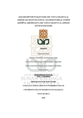 Text (ANALISIS METODE SYARAH HADIS ABU YAHYA ZAKARIYA AL ANSHARI DALAM KITAB FATH AL-‘ALLAM BI SYARH AL-I’LAM BI AHADIS AL-AHKAM KARYA ABU YAHYA ZAKARIYA AL-ANSHARI (STUDI KITAB HADIS))