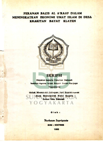 Nurhasan Supriyanto, NIM.: 02874855 (1993) PERANAN BAZIS AL A'RAAF DALAM MENINGKATKAN EKONOMI UMAT ISLAM DI DESA KRAKITAN BAYAT KLATEN. Skripsi thesis, UIN SUNAN KALIJAGA YOGYAKARTA.