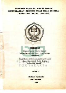 Tujuan penelitian ini adalah untuk mengetahui sejauh mana peranan BAZIS Al A’raaf dalam meningkatkan ekonomi umat Islam di Desa Krakitan Bayat Klaten, serta mengidentifikasi faktor-faktor yang mendukung dan menghambat pelaksanaannya. Penelitian ini menggunakan metode kualitatif deskriptif dengan teknik pengumpulan data melalui wawancara, observasi, dokumentasi, dan angket. Data dianalisis secara induktif dengan pendekatan deskriptif-interpretatif. Hasil penelitian menunjukkan bahwa BAZIS Al A’raaf yang berdiri sejak tahun 1987 berperan penting dalam pengumpulan dan pendayagunaan dana zakat, infak, dan sedekah (ZIS) untuk peningkatan kesejahteraan masyarakat, terutama melalui pemberian modal usaha tanpa bunga dan penyuluhan kewirausahaan. Dampak dari kegiatan tersebut antara lain peningkatan penghasilan masyarakat, dengan 55,55% responden mengalami kenaikan pendapatan meskipun dalam jumlah yang relatif kecil. Selain itu, kegiatan BAZIS turut mendorong semangat masyarakat untuk berinfak, menabung, dan mengikuti pengajian. Faktor pendukung kegiatan BAZIS meliputi semangat pengurus, keaktifan nasabah, serta sistem pembiayaan tanpa bunga. Adapun faktor penghambatnya adalah keterbatasan dana, kurangnya tenaga penyuluh, dan rendahnya kemampuan manajerial sebagian penerima bantuan. Kesimpulannya, peranan BAZIS Al A’raaf cukup signifikan dalam meningkatkan ekonomi umat Islam, meskipun masih memerlukan peningkatan dalam pengelolaan dan pembinaan lanjutan.
