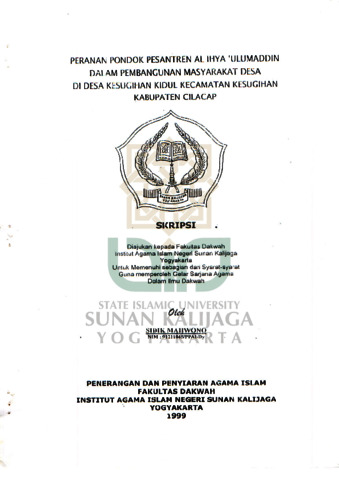Sidik Mahwono, NIM.: 91211045 (1999) PERANAN PONDOK PESANTREN AL IHYA 'ULUMADDIN DALAM PEMBANGUNAN MASYARAKAT DESA DI DESA KESUGIHAN KIDUL KECAMATAN KESUGIHAN KABUPATEN CILACAP. Skripsi thesis, UIN SUNAN KALIJAGA YOGYAKARTA.