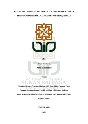 Text (RESEPSI SANTRI PONDOK PESANTREN AL BAROKAH YOGYAKARTA TERHADAP HADIS SHALAWAT DALAM TRADISI MUJAHADAH)