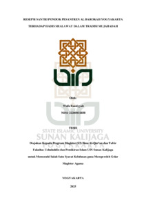 Wafa Fauziyyah, NIM.: 22205032038 (2025) RESEPSI SANTRI PONDOK PESANTREN AL BAROKAH YOGYAKARTA TERHADAP HADIS SHALAWAT DALAM TRADISI MUJAHADAH. Masters thesis, UIN SUNAN KALIJAGA YOGYAKARTA.