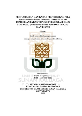 Text (PERTUMBUHAN DAN KADAR PROTEIN IKAN NILA (Oreochromis niloticus Linnaeus, 1758) SETELAH PEMBERIAN PAKAN TEPUNG FERMENTASI DAUN SINGKONG (Manihot utilissima Pohl) DAN TEPUNG IKAN RUCAH)