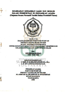 Khoiriyah Roihan, NIM.: 93311885 (1998) KEABSAHAN KEHADIRAN SAKSI NON MUSLIM DALAM PEMBUKTIAN DI PENGADILAN AGAMA (TINJAUAN SECARA NORMATIF YURIDIS DALAM PERSPEKTIF ULAMA). Skripsi thesis, UIN SUNAN KALIJAGA YOGYAKARTA.
