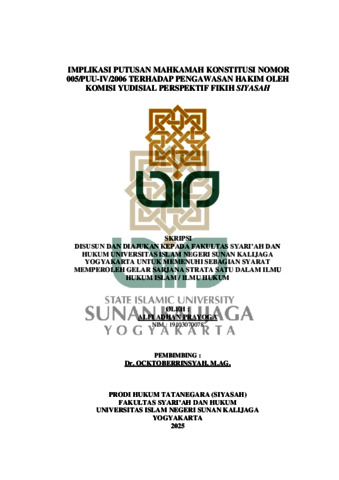 Text (IMPLIKASI PUTUSAN MAHKAMAH KONSTITUSI NOMOR 005/PUU-IV/2006 TERHADAP PENGAWASAN HAKIM OLEH KOMISI YUDISIAL PERSPEKTIF FIKIH SIYASAH)
