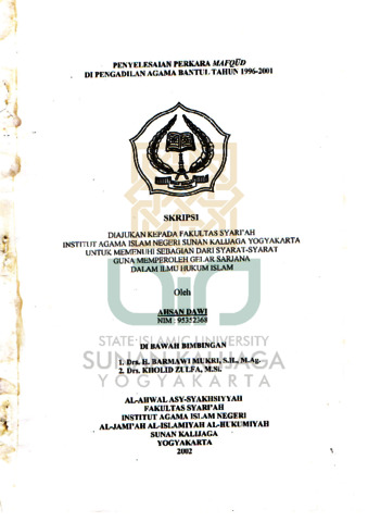 Text (PENYELESAIAN PERKARA MAFQUD DI PENGADILAN AGAMA BANTUL TAHUN 1996-2001)