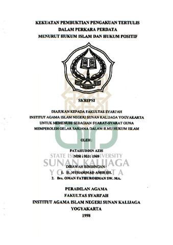 Text (KEKUATAN PEMBUKTIAN PENGAKUAN TERTULIS DALAM PERKARA PERDATA MENURUT HUKUM ISLAM DAN HUKUM POSITIF)