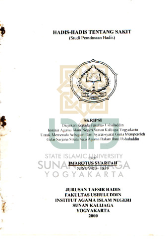 Imarotus Syari'ah, NIM.: 94531839 (2000) HADIS-HADIS TENTANG SAKIT (STUDI PEMAKNAAN HADIS). Skripsi thesis, UIN SUNAN KALIJAGA YOGYAKARTA.
