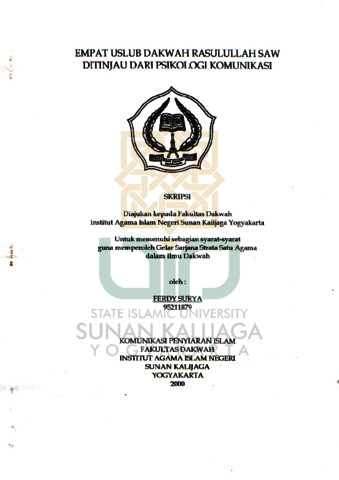 Ferdy Sury, NIM.: 95211879 (2000) EMPAT USLUB DAKWAH RASULULLAH SAW DITINJAU DARI PSIKOLOGI KOMUNIKASI. Skripsi thesis, UIN SUNAN KALIJAGA YOGYAKARTA.