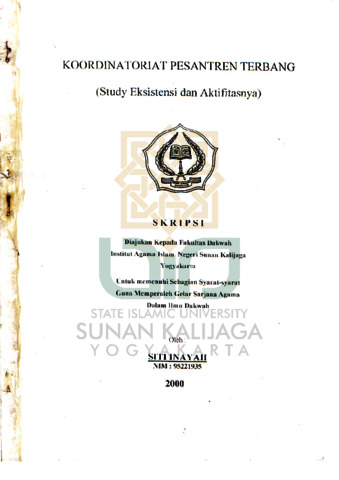 Siti Inayah, NIM.: 95221935 (2000) KOORDINATORIAT PESANTREN TERBANG (STUDI EKSISTENSI DAN AKTIFITASNYA). Skripsi thesis, UIN SUNAN KALIJAGA YOGYAKARTA.