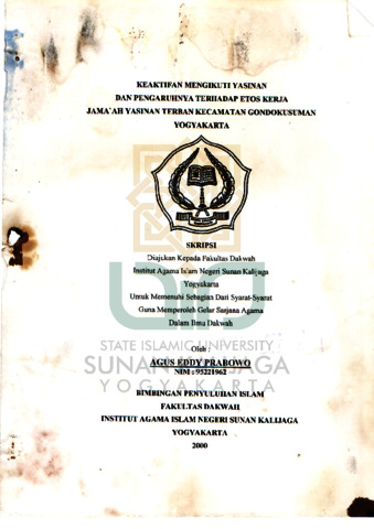 Text (KEAKTIFAN MENGIKUTI YASINAN DAN PENGARUHNYA TERHADAP ETOS KERJA JAMA'AH YASINAN TERBAN KECAMATAN GONDOKUSUMAN YOGYAKARTA)