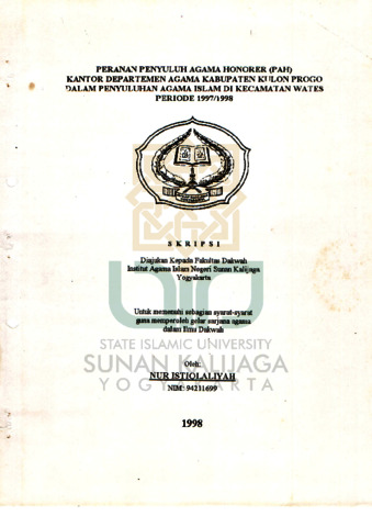 Text (PERANAN PENYULUH AGAMA HONORER (PAH) KANTOR DEPARTEMEN AGAMA KABUPATEN KULON PROGO DALA PENYULUHAN AGAMAISLAM DI KECAMATANWATES PERIODE 1997/1998)