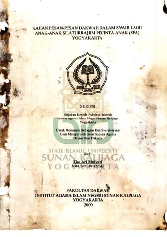 Eko Ari Mulyani, NIM.: 94211811 (2000) KAJIAN PESAN-PESAN DAKWAH DALAM SYAIR LAGU ANAK-ANAK SILATURRAHIM PECINTA ANAK (SPA) YOGYAKARTA. Skripsi thesis, UIN SUNAN KALIJAGA YOGYAKARTA.
