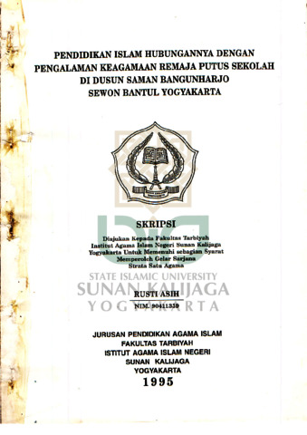 Text (PENDIDIKAN ISLAM HUBUNGANNYA DENGAN PENGALAMAN KEAGAMAAN REMAJA PUTUS SEKOLAH DI DUSUN SAMAN BANGUNHARJO SEWON BANTUL YOGYAKARTA)