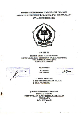 Munisah, NIM.: 93341999 (2000) KONSEP PENGEMBANGAN SUMBER ZAKAT TANAMAN DALAM PERSPEKTIF PEMIKIRAN ABU HANIFAH DAN ASY -SYAFI’I (ANALISIS METODOLOGI). Skripsi thesis, UIN SUNAN KALIJAGA YOGYAKARTA.
