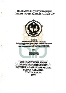 Penelitian ini dilatarbelakangi oleh pentingnya kesadaran terhadap persoalan eksistensi Iblis yang senantiasa menimbulkan perdebatan dan perbedaan pendapat di kalangan ulama dan orientalis, terutama karena Iblis merupakan makhluk spiritual yang memiliki peran sentral dalam isu keimanan dan kehidupan manusia. Permasalahan pokok dalam skripsi ini dirumuskan menjadi dua hal: bagaimana pendapat Sayyid Qutub tentang Iblis dalam tafsirnya, dan bagaimana pandangannya terhadap eksistensi Iblis masa kini. Tujuan penelitian ini adalah untuk mengetahui secara mendalam pendapat Qutub mengenai Iblis dan implikasinya dalam tafsir Fi Zilal al-Qur'an. Penelitian ini menggunakan metode studi pustaka (library research) yang mengumpulkan data primer (karya Qutub, terutama Fi Zilal al-Qur'an) dan data sekunder (karya lain yang berkaitan dengan topik). Hasil penelitian menyimpulkan bahwa Qutub menafsirkan Iblis sebagai makhluk gaib yang membangkang terhadap perintah Allah dan berupaya menyesatkan manusia. Eksistensi Iblis menurut Qutub adalah nyata, bersemayam di dalam diri manusia, memengaruhi hawa nafsu. Kesimpulannya, Qutub memandang Iblis sebagai makhluk gaib yang memiliki sifat jahat dan menjadi musuh abadi manusia, dan eksistensinya berkaitan erat dengan bagaimana manusia mampu mengendalikan hawa nafsunya.