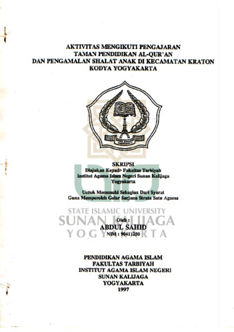 Text (AKTIVITAS MENGIKUTI PENGAJARAN TAMAN PENDIDIKAN AL-QURAN DAN PENGALAMAN SHALAT ANAK DI KECAMATAN KRATON KODYA YOGYAKARTA)