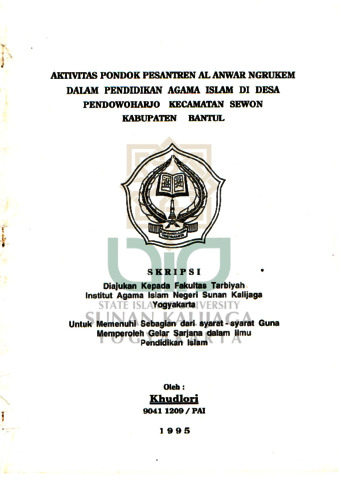 Text (AKTIVITAS PONDOK PESANTREN AL ANWAR NGRUKEM DALAM PENDIDIKAN AGAMA ISLAM DI DESA PENDOWOHARJO KECAMATAN SEWON KA BUPATEN BANTUL)