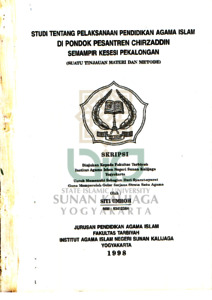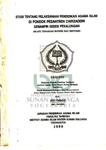 Text (STUDI TENTANG PELAKSANAAN PENDIDIKAN AGAMA ISLAM DI POND OK PESANTREN CHIRZADDIN SEMAMPIR KESISI PEKALONGAN (SUATU TINJAUAN MATERIO DAN METODE)