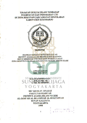 Ahmad Arkhadi, NIM.: 90320837 (1998) TINJAUAN HUKUM ISLAM TERHADAP PEMBUATAN DAN PEMASARAN CIU DI DESA BEKONANG, KECAMATAN MOJOLABAN, KABUPATEN SUKOHARJO. Skripsi thesis, UIN SUNAN KALIJAGA YOGYAKARTA.