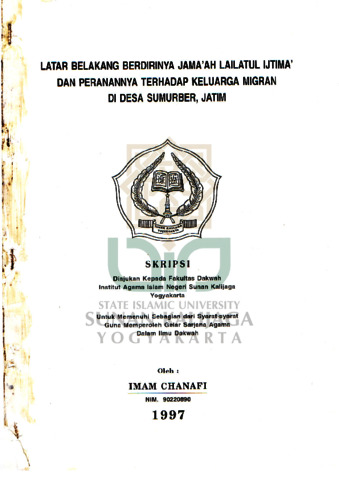 Imam Chanfi, NIM.: 90220890 (1997) LATAR BELAKANG BERDIRINYA JAMAAH LAILATUL IJTIMA’ DAN PERANANNYA TERHADAP KELUARGA MIGRAN DI DESA SUMURBER, JAWA TIMUR. Skripsi thesis, UIN SUNAN KALIJAGA YOGYAKARTA.