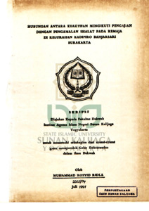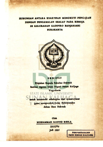 Muhammad Rosyid Ridla, NIM.: 02852005 (1991) HUBUNGAN ANTARA KEAKTIFAN MENGIKUTI PENGAJIAN DENGAN PENGAMALAN SHALAT PADA REMAJA DI KELURAHAN KADIPIRO BANJARSARI SURAKARTA. Skripsi thesis, UIN SUNAN KALIJAGA YOGYAKARTA.
