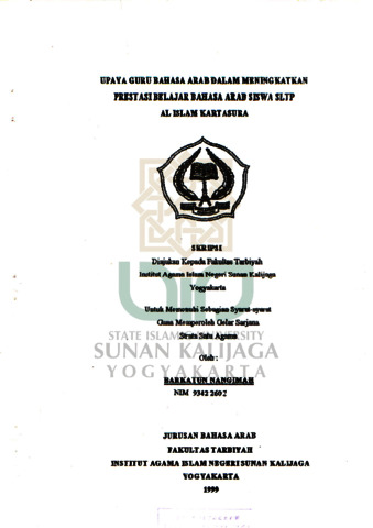 Barakatun Nangimah, NIM.: 93422602 (1999) UPAYA GURU BAHASA ARAB DALAM MENINGKATKAN PRESTASI BELAJAR BAHASA ARAB SISWA SLTP AL-ISLAM KARTASURA. Skripsi thesis, UIN SUNAN KALIJAGA YOGYAKARTA.