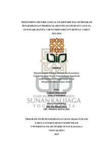 Lailatul Munawaroh, NIM.: 21102030038 (2025) MONITORING METODE LOGICAL FRAMEWORK DALAM PROGRAM PENGEMBANGAN PRODUK OLAHAN PISANG DI DUSUN SANTAN, GUWOSARI, BANTUL CSR PT PERTAMINA FT REWULU TAHUN 2023-2024. Skripsi thesis, UIN SUNAN KALIJAGA YOGYAKARTA.